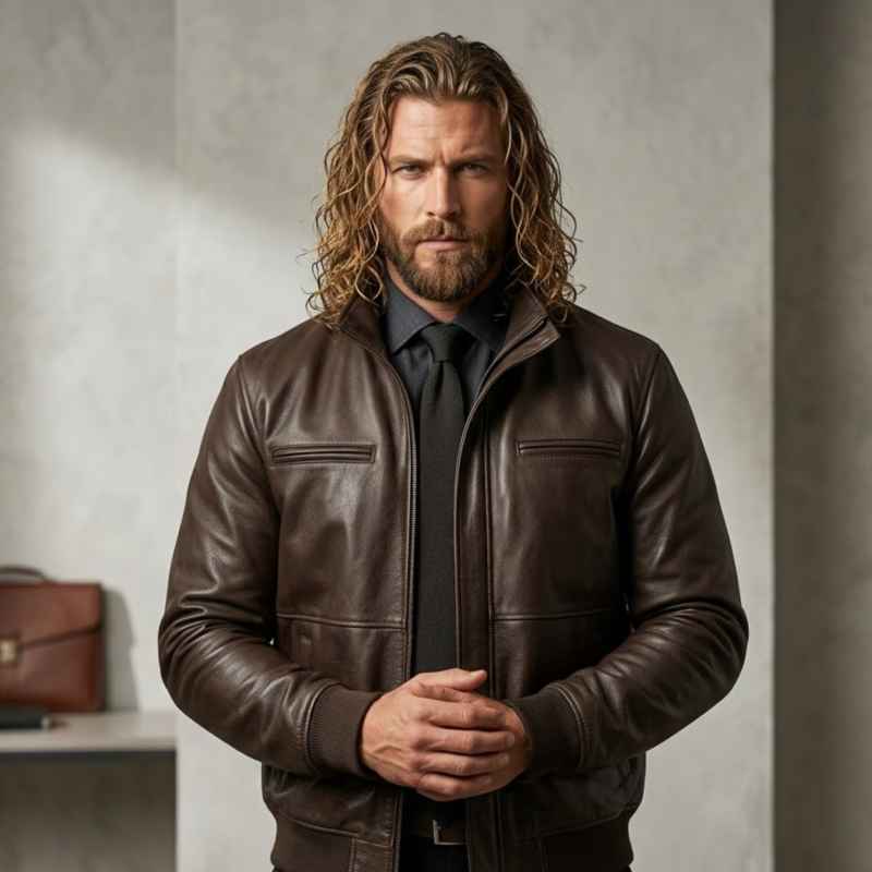 Duskwood Men’s Dark Brown Leather Bomber Jacket | Full-Grain Smart Casual | Snag Leather