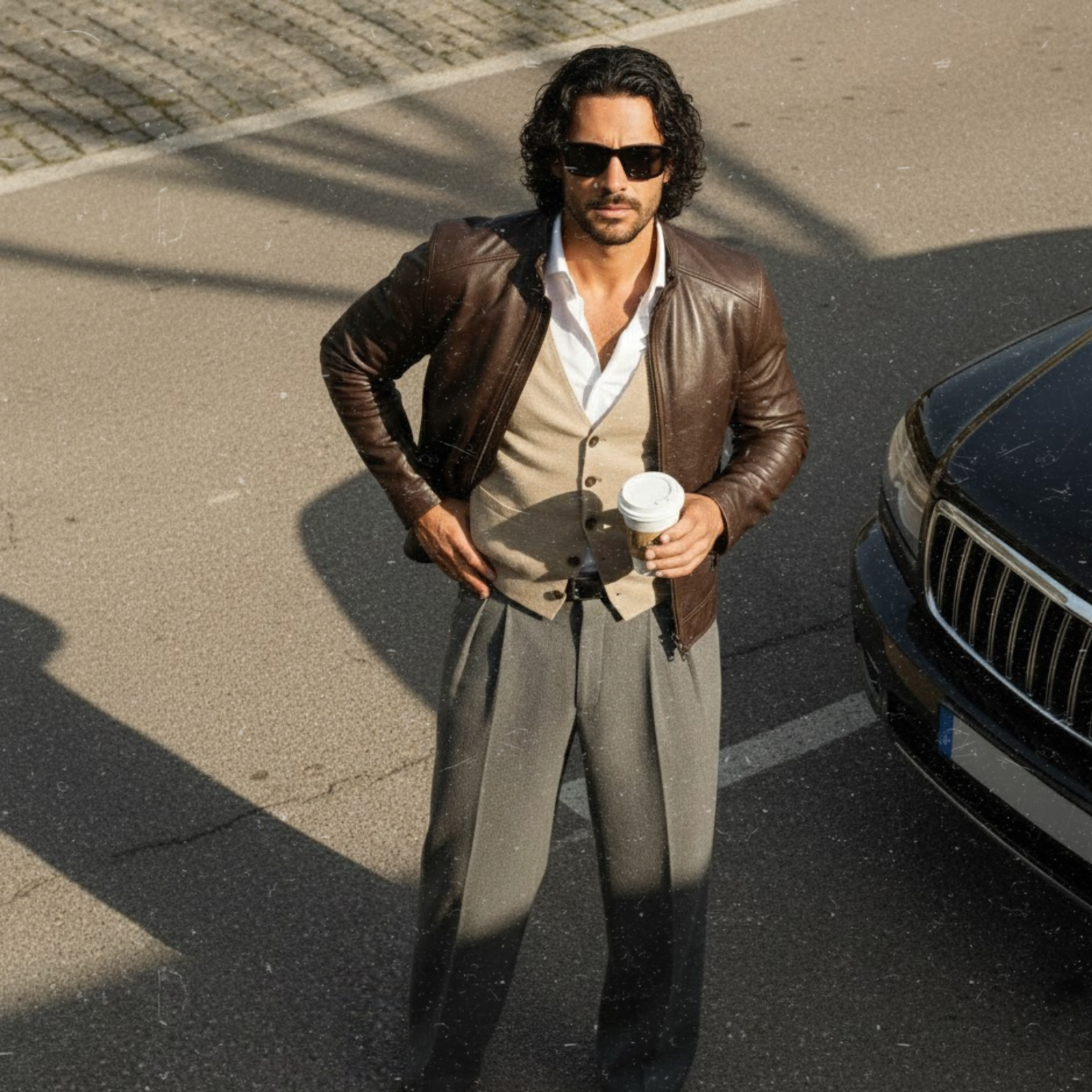 When choosing a leather jacket, always look for transparency about the leather type. True quality starts with the material.